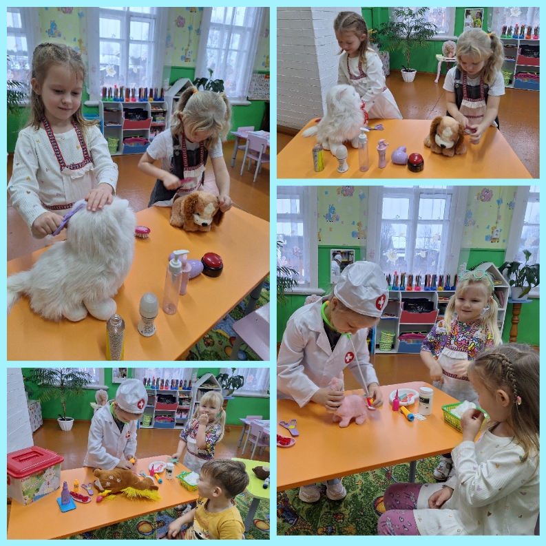 В рамках ранней профориентации дети все дружно организовали сюжетно-ролевую игру "Фермер", "Приют для животных» и "Ветклиника».
